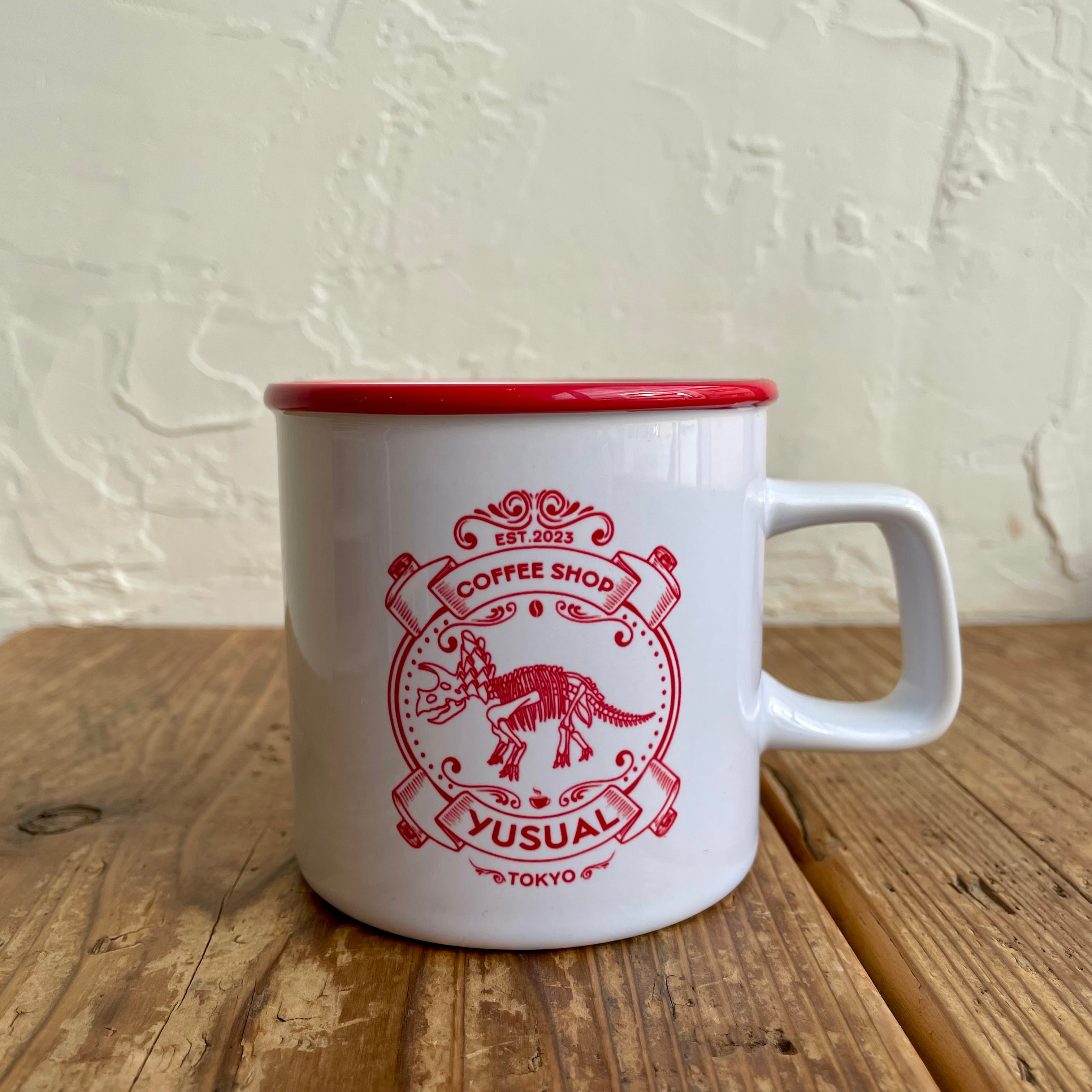 オリジナルロゴ入りの陶磁器製マグカップです。